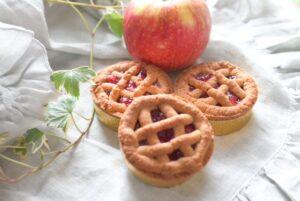 長野県飯綱産のリンゴとラズベリーを合わせたジャムをサンドした、1人分サイズの食べやすいリンツアートルテです。