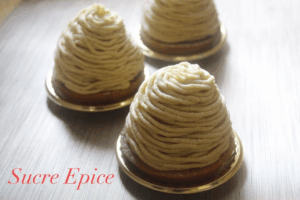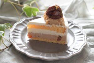 渋皮栗をのせた、白いモンブラン風ショートケーキ。