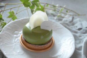 爽やかなマンゴーのゼリーとマンゴータルトに抹茶のムースを合わせました。過去にやっていて人気だったリクエストメニューです。