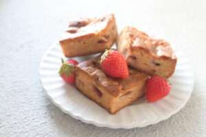 フレッシュ苺を入れて焼きこんだホワイトのブラウニー