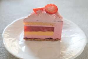 苺のムースに、苺のコンフィと柚子のクリームをセンターに忍ばせた春らしい1品です。