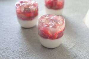 ヴァニラパンナコッタにレモンミントゼリーと苺を合わせました。